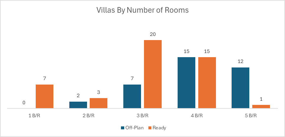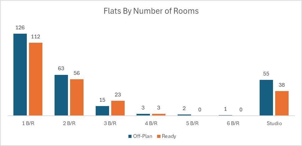 In the ready segment, apartments remained the primary driver of transactions, contributing roughly two-thirds of the segment’s value. Villas followed with a strong secondary share, while commercial and hotel apartment transactions made up a relatively small portion of completed property sales.