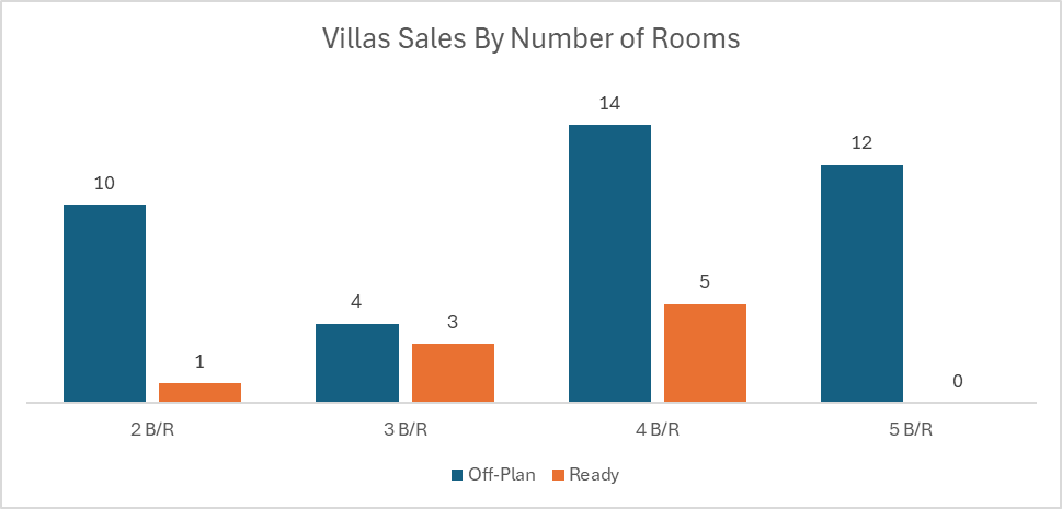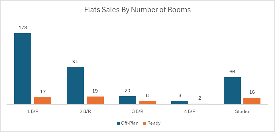 Off-plan activity remained firmly in control of the market, with flats accounting for the vast majority of value and villas providing a meaningful secondary contribution.
