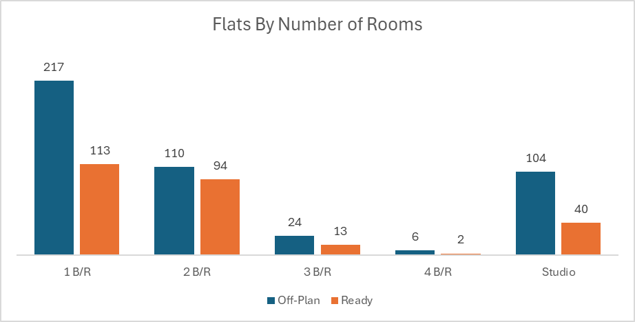 Ready transactions were also apartment-led, but commercial had a noticeably larger footprint than in off-plan, supporting a more diversified mix.
