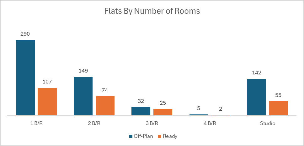 Within the ready segment, flats remained the core of end-user and landlord demand, while villas captured over one-fifth of traded value, supported by steady interest in established residential communities and income-generating commercial stock.