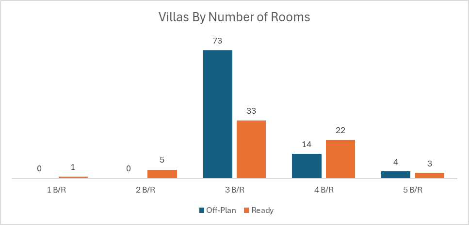 Off-plan activity was led by flats, with villas contributing just under a quarter of spend and commercial providing additional depth.